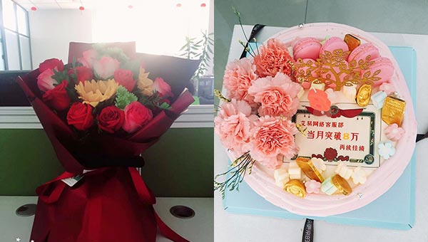 “好,很好,非常好”,隨著人事主管的問好,活動開始了!6月2日下午,艾易網絡舉行新人入職宣誓儀式暨5月份“服務之王”頒獎儀式!給新人準備了入職禮物,給“客服之王”準備了鮮花、蛋糕、證書、現金獎勵。