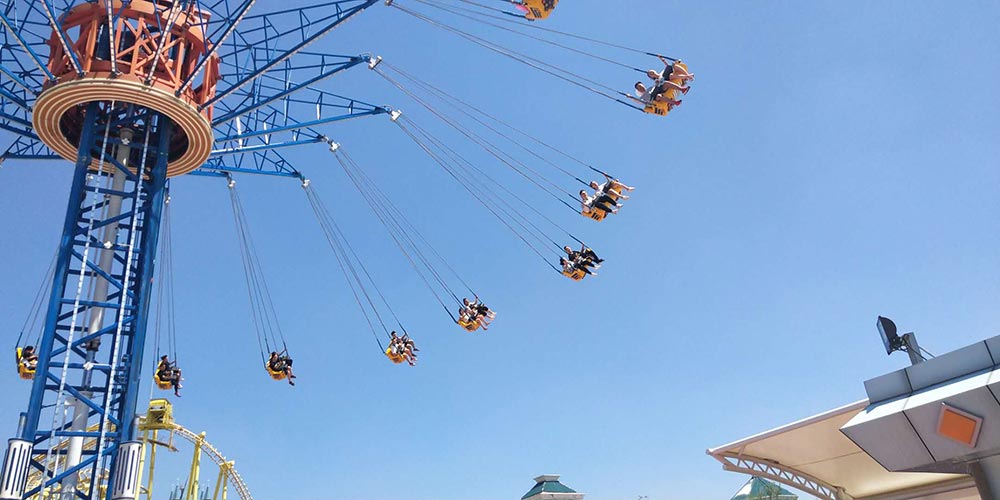 在方特園內(nèi)我們一起游玩了“逃出恐龍島”,這也是一個(gè)非常熱門的項(xiàng)目,通常排隊(duì)時(shí)間需要很久。還好我們來的比較早,大約等了半個(gè)小時(shí),我們便成功登上漂筏探險(xiǎn)之旅。驚險(xiǎn)刺激的“逃出恐龍島”載著我們深入“恐龍島”腹地。筏艇順?biāo)拢┻^未知的驚險(xiǎn),駛?cè)胗陌瞪蕉矗惶焦爬喜柯鋫髡f和神秘爬行巨獸的秘密。玩下來怎么說呢?就是全身濕透還大呼過癮。看邊上很多其他游客的表情,都是一副劫后余生的感覺,想來大家都會(huì)如此吧......接著我們又去了“卡丁車”、“唐古拉雪山”、“火流星”、“熊出沒”、“雙層木馬”、“中華五千年”、“魔法城堡”、“大擺錘”、“空中飛舞”、“海盜船”、“方特城堡”、“星際航班”、“高空飛翔”……